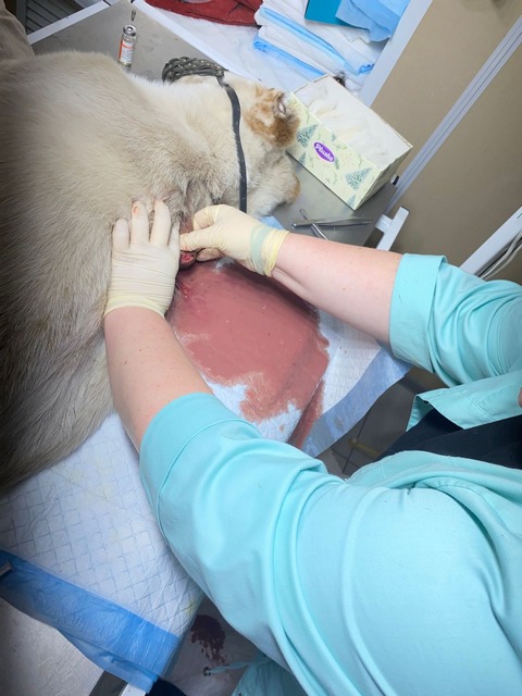 Сотрудниками ГБУ Брянской области «Навлинская РВС» были проведены все необходимые процедуры данному животному (собаке Герде) и были отпущены домой с назначение лечения.