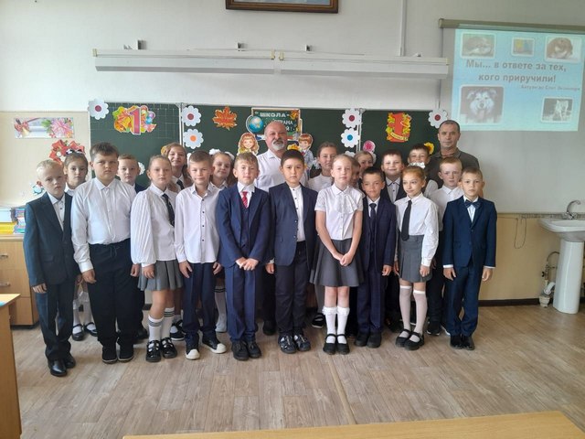 1 сентября 2025 года в МБОУ Выгоничская СОШ для учеников 3 класса начальник ГБУ Брянской области «Выгоничская райветстанция» провел урок добра на тему: «Адаптация собаки, взятой с улицы или из приюта». Целью урока было познакомить ребят с общими чертами характера собак. Рассказать, что нужно знать об адаптации животного, взятого в дом, научить определять общее отношение собаки к человеку и к месту своего нахождения, привить ответственное отношение и любовь к взятому питомцу.