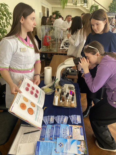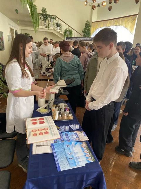 В холле актового зала университета был развернут стенд ГБУ Брянской области «Управление ветеринарии города Брянска», с информацией об учреждении и мини - лаборатория, где каждый желающий мог попробовать себя в качестве ветеринарного врача лаборатории ветеринарно – санитарной экспертизы.