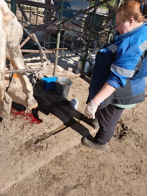 Взятие крови у крупного рогатого скота в СПК «Калининский»