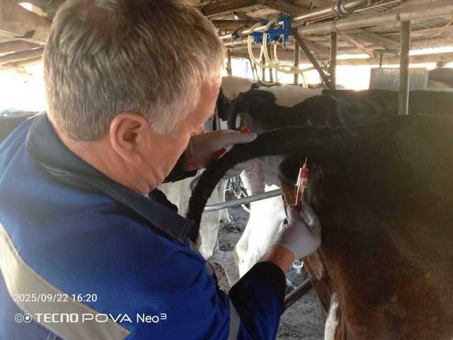 23.09.2025 года в рамках федерального мониторинга специалистами ГБУ Брянской области и с председателями россельхознадзора был произведен отбор проб на блютанг в КФХ Мартыненко К.А.